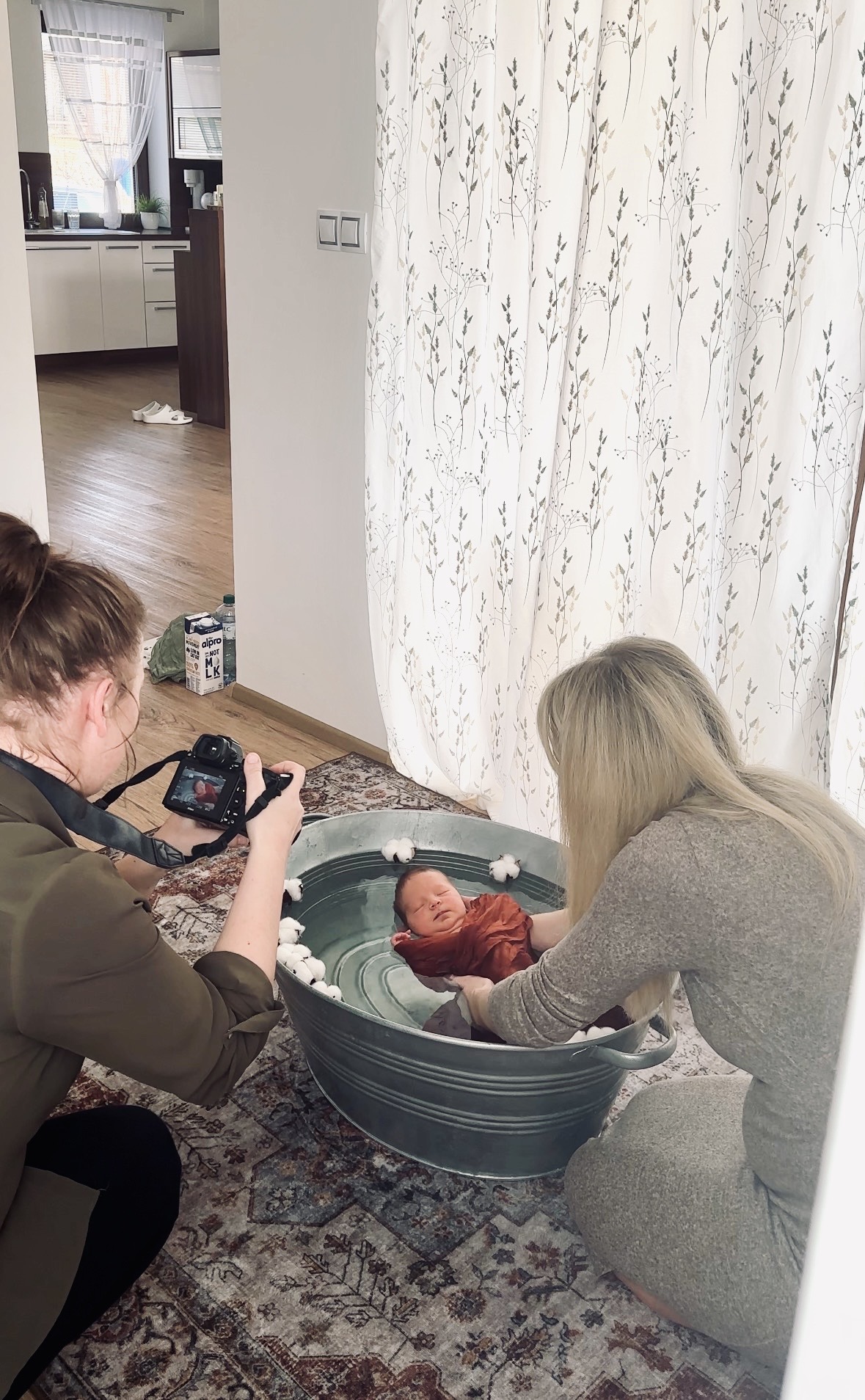 Přinesu si speciální vaničku a měkoučký koberec, který na fotkách vytvoří neuvěřitelně útulnou a hřejivou atmosféru.